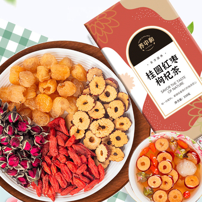 Nourishing and Gui round red dates medlar tea rose tea leaves 15 bags of flowers and herbs tea women soak up water and drink 210g boxed