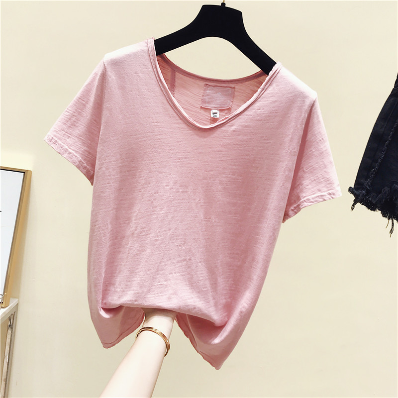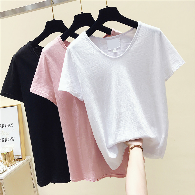 South Korea exploits white short sleeve T-shirt woman 2022 Summer new V collar Bamboo Festival cotton loose with undershirt blouses