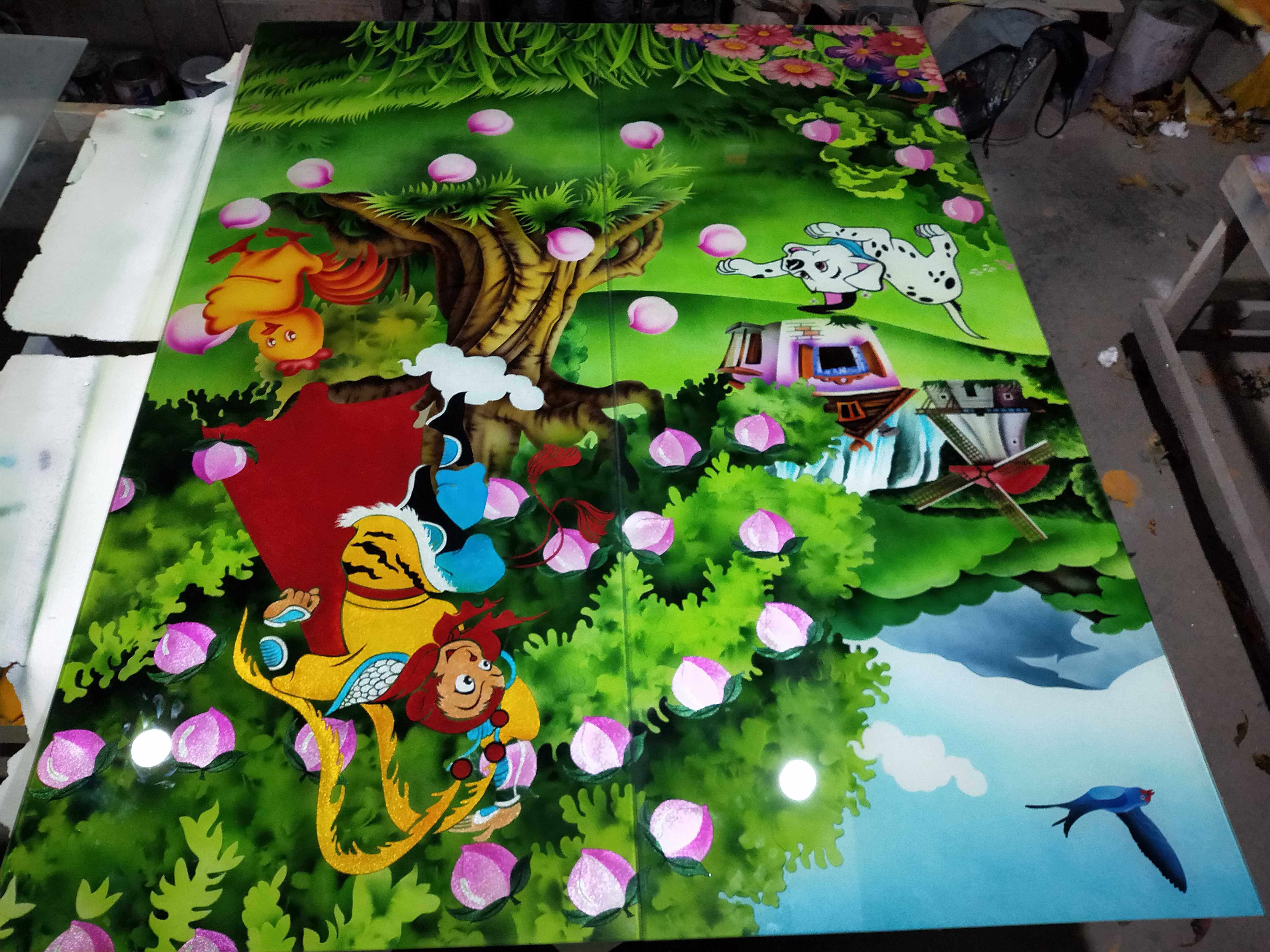 Art glass porch background wall carved frosted custom craftsmanship children's room tempered