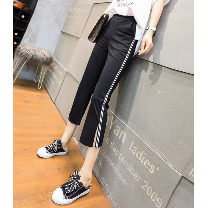 Cropped trousers women's summer thin section 2022 new side stripe high waist micro flared trousers split trousers slim sports casual pants