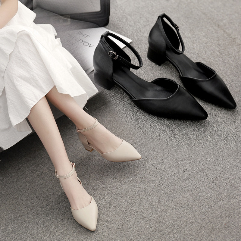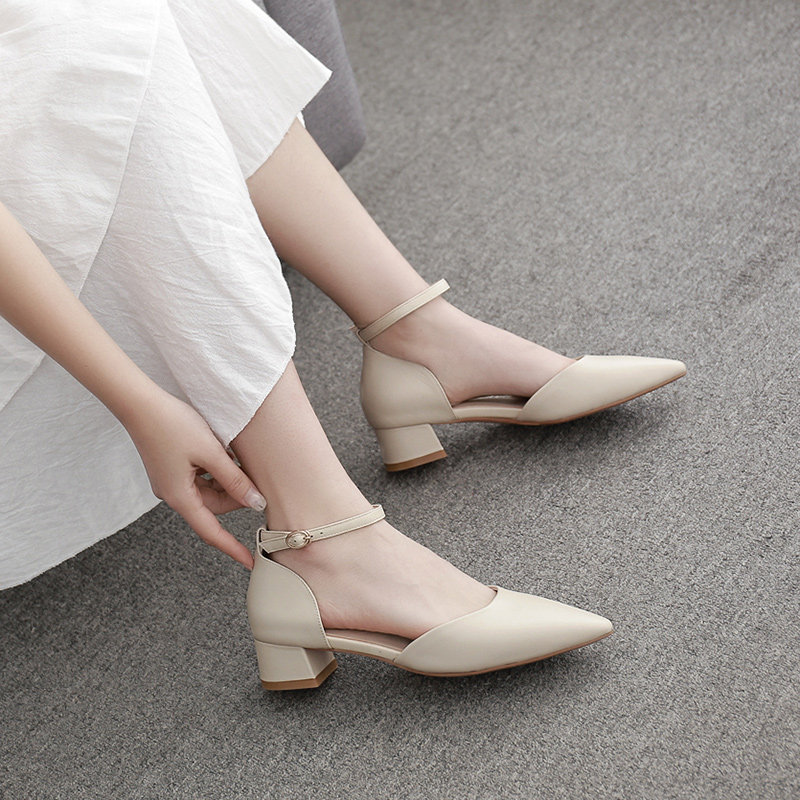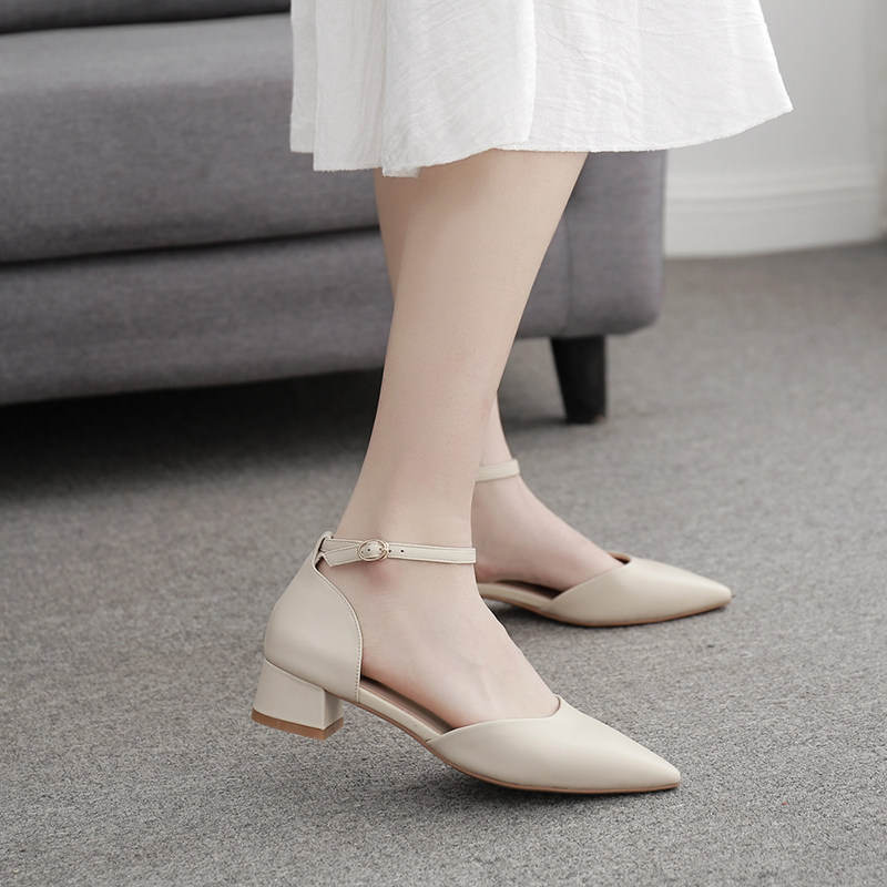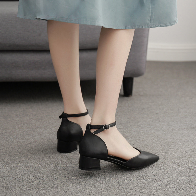 Thick heel sandals women's 2022 new white temperament hollow fairy shoes medium and low heel buckle small size professional shoes