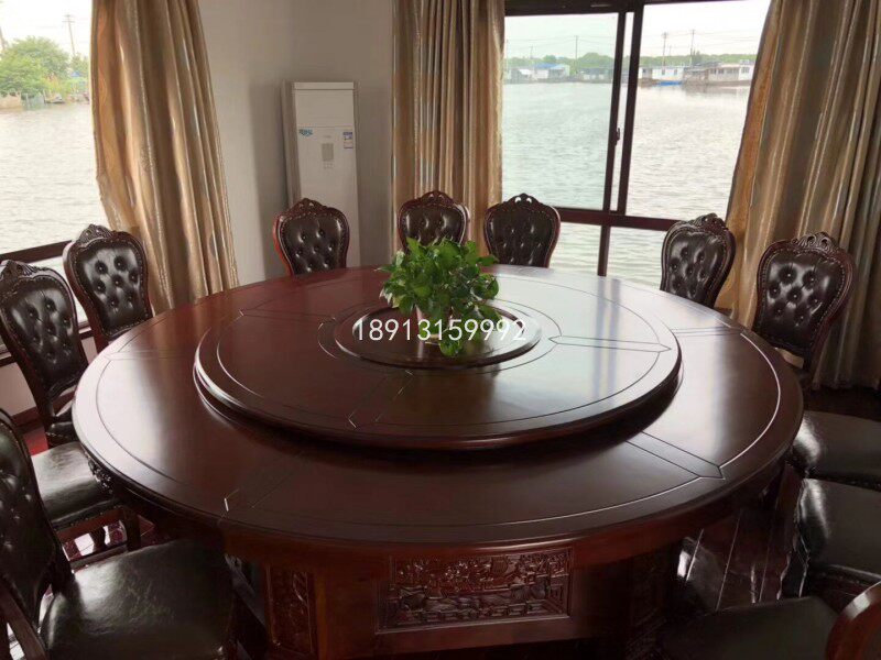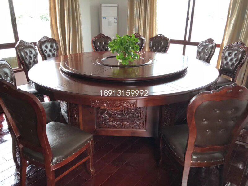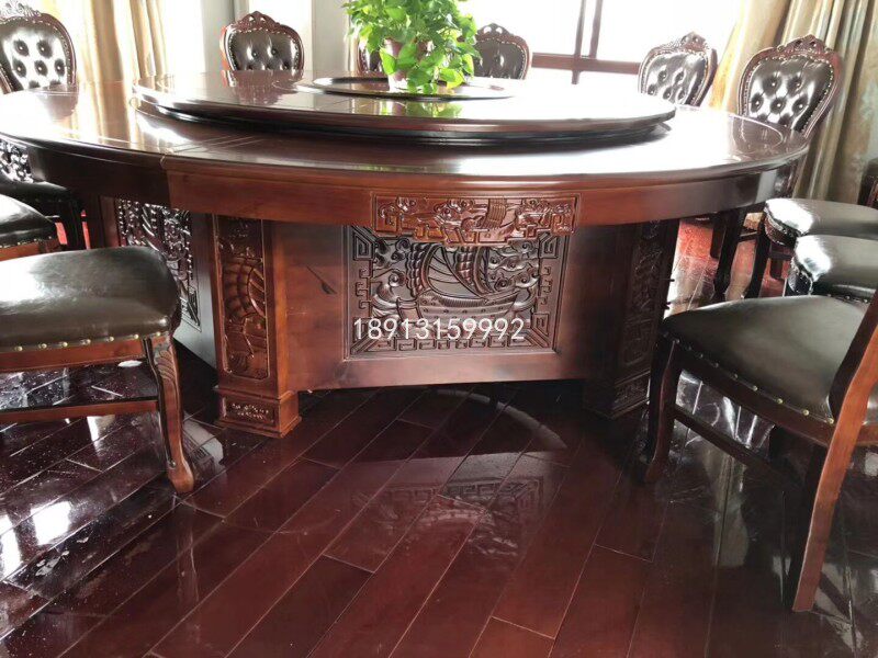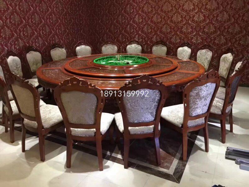 Hotel electric large round table 3 rice shop clubhouse Oak carved box Automatic music fountain 20 people dining table and chair