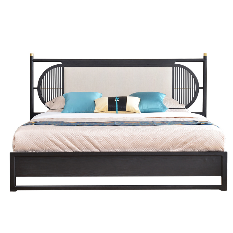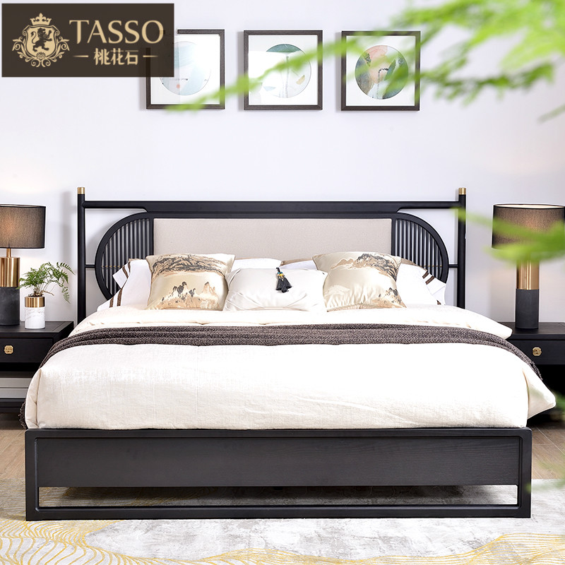 New Chinese style solid wood bed 18m double bed modern minimalist master bedroom king bed model room homestay factory direct sales