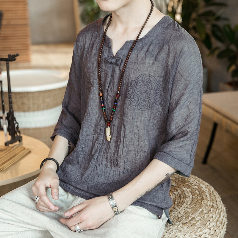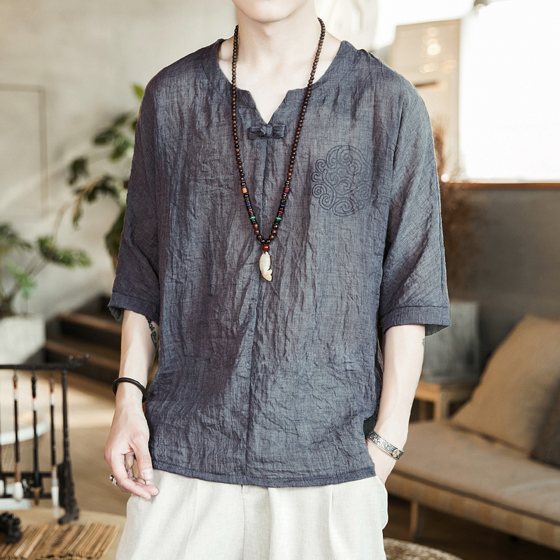 Summer Down with short sleeves Male slim fit loose with large size China Wind disc buckle men's mantra mantra The ancient wind Han serve the youth trend