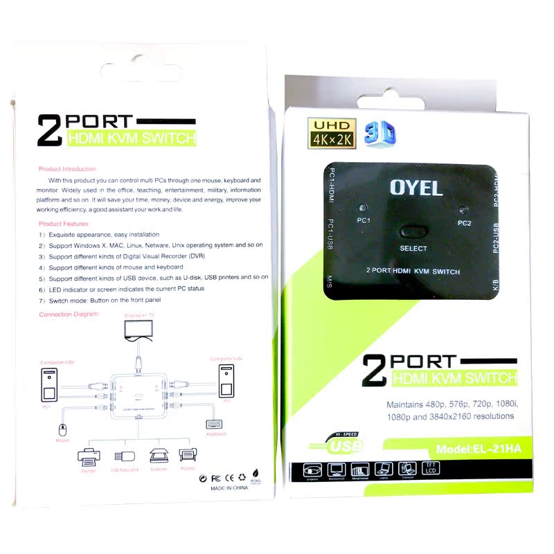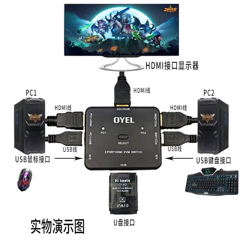 Keyboard mouse display sharer HDMI switch 2 in 1 out of KVM cutting host screen split 4K