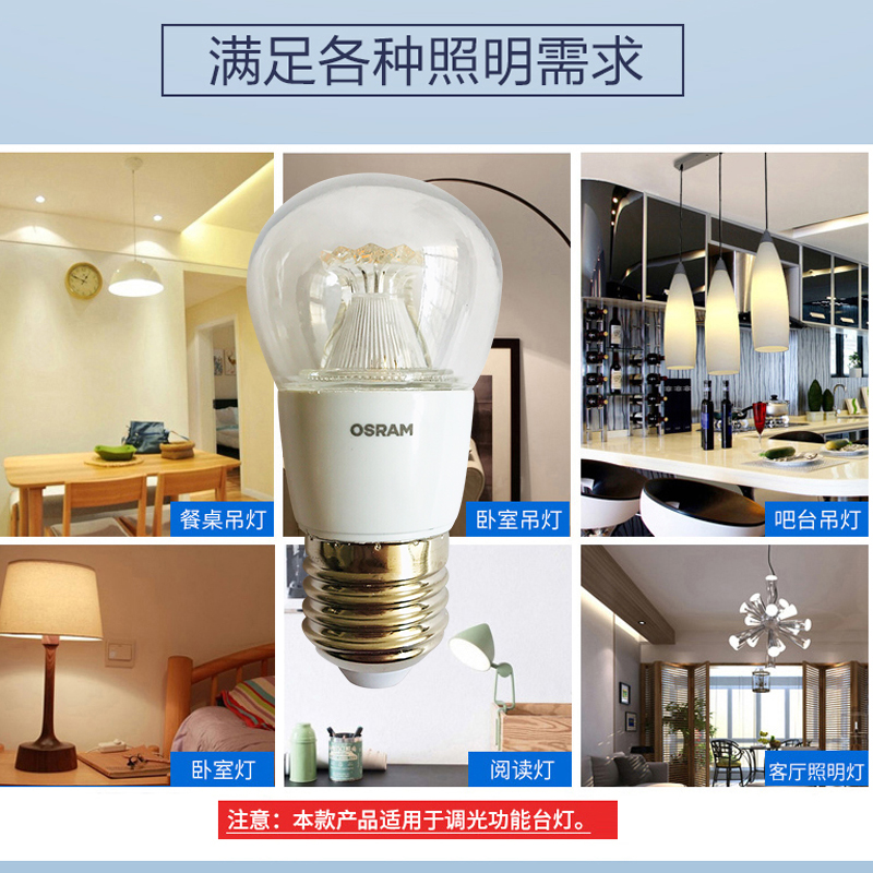 Osram LED bulb dimming bulb Energy-saving screw hanging table lamp Warm ultra-bright light source Home lighting bulb