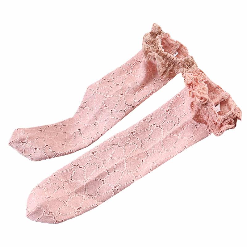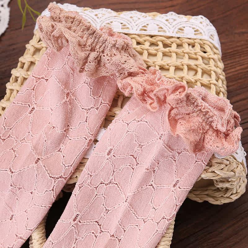 South Korean girls socks spring autumn 2022 new Korean version ladies lace butterfly knot 100 hitch lace children midbarrel socks