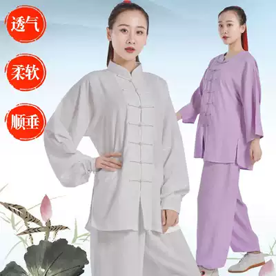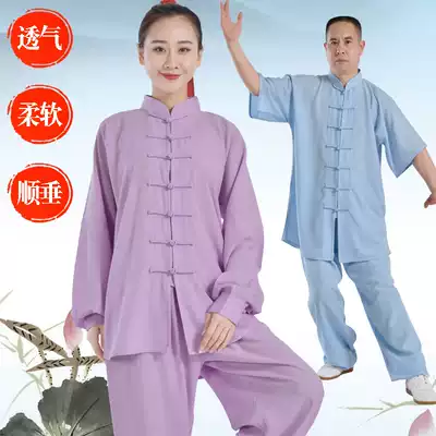 Tai chi suit female feather lun cotton and hemp summer practice suit Chinese style middle-aged and elderly performance martial arts suit Male Taijiquan costume