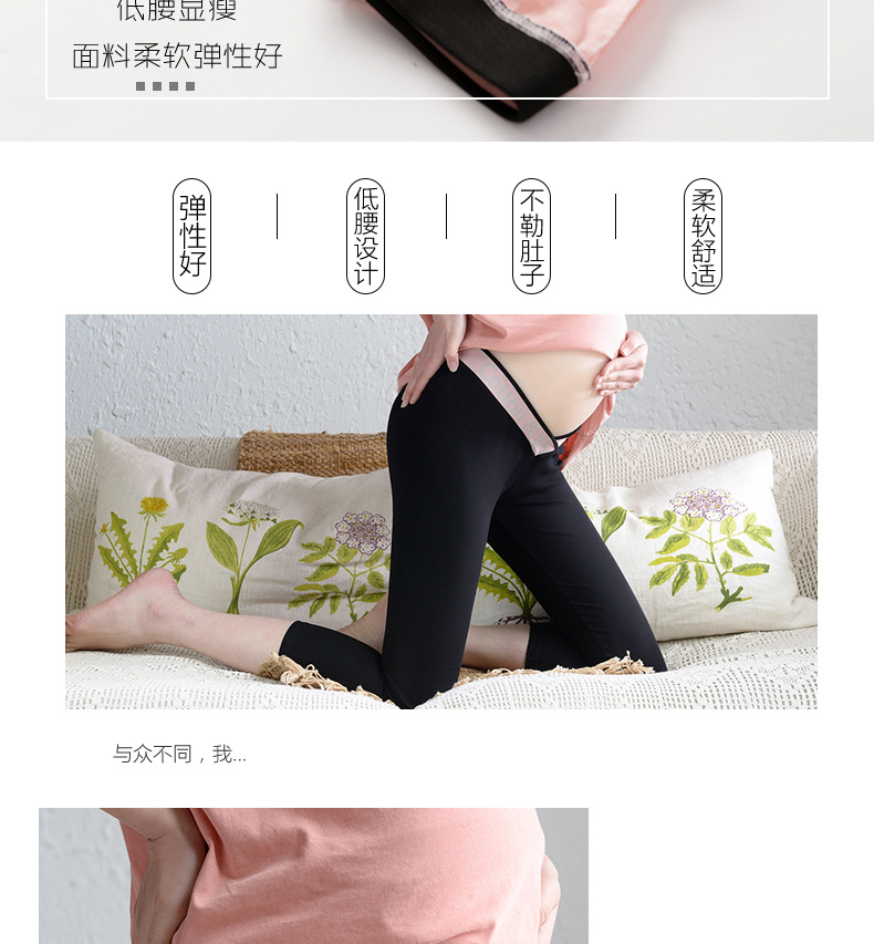 2019 Summer new pure cotton Low waist Abdominal Pants Elastic slim fit 7 Pants Pregnant pregnant women Nets can be worn outside