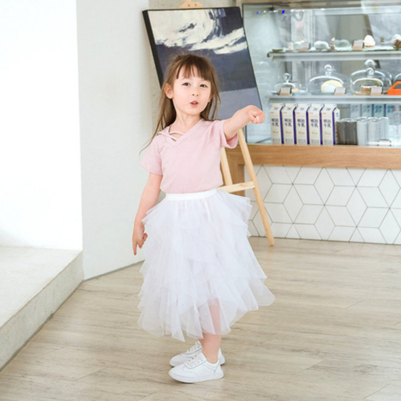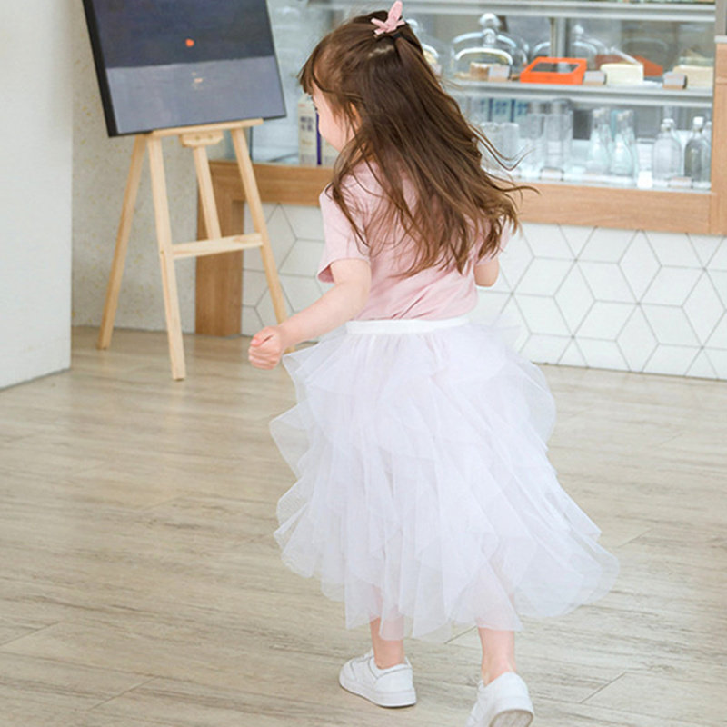 Children's suit White Puffy mesh skirt Girls skirt Spring and summer cake dress Large child pleated fairy long dress