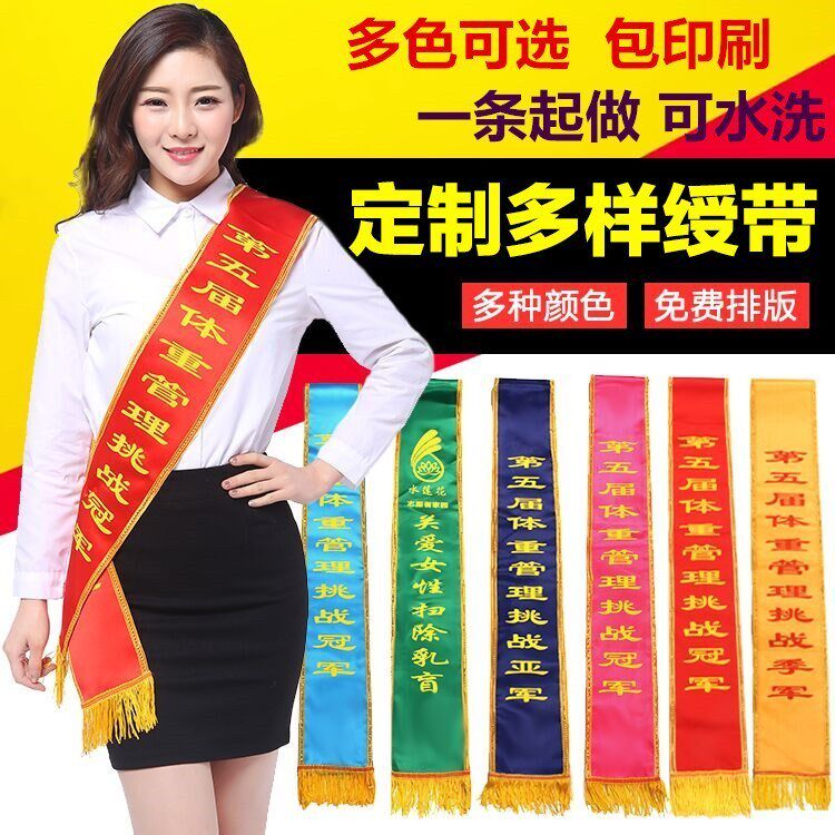 Conference Ribbon Hanging Ribbon Hotel Banner Oblique Etiquette Performance Flag Covering Custom-made Festive Boom