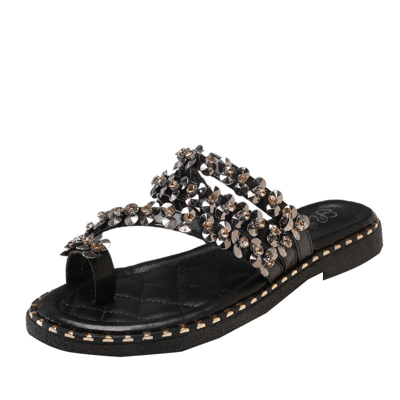 ins tide net red slippers female outside wearing 2022 Summer new fashion 100 hitch water drill clips feet flat bottom sandals shoes