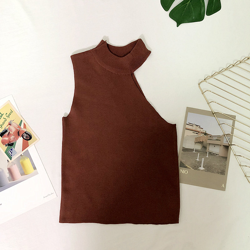 Knitted harness vest female summer Sexy outwear Fashion 100 hitch bottom elegant sleeveless sleeveless collarbone blouse hanging neck