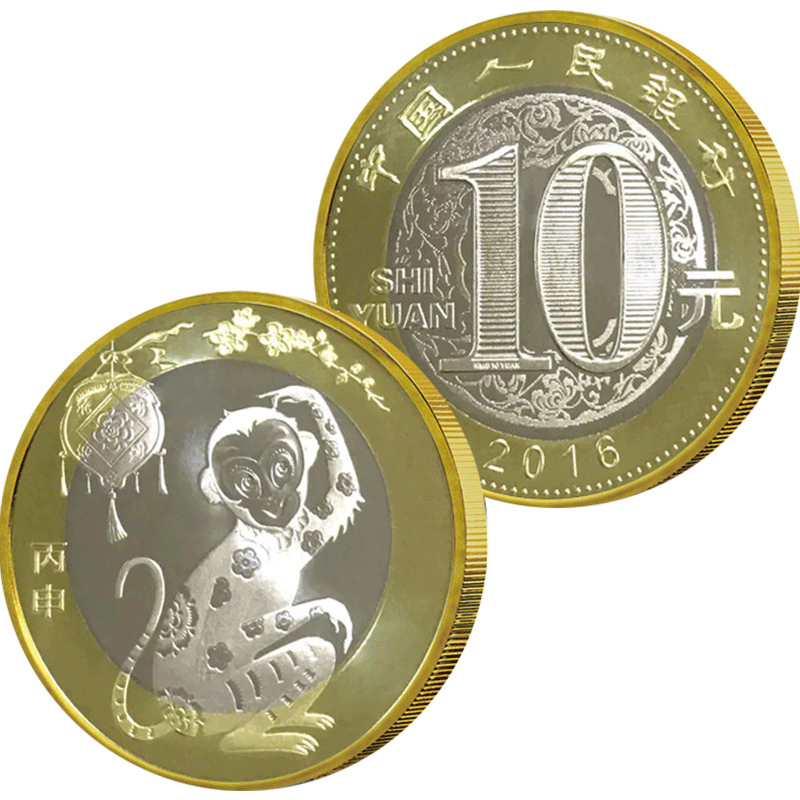 Sky China Golden 2016 Monkey Year Circulation Coin Zodiac Lunar New Year Series commemorative coins RMB10 face value coins