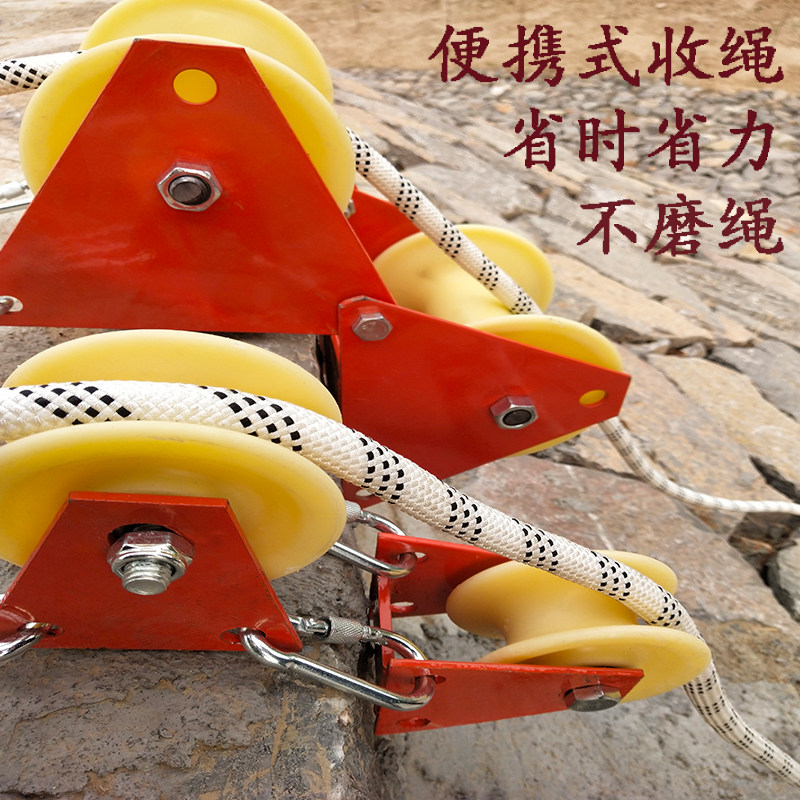 Labor-saving rope-protection wheel of manual pulley of aerial work manual pulley can fold and fold the rope release rope card wall corner rope-collecting rope