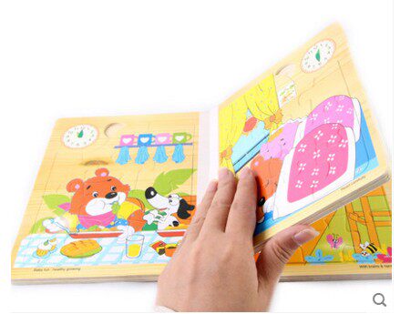 Bear Happy day in Kindergarten Wooden puzzle Turtle and Hare Wooden puzzle Storybook Little Red Riding Hood Wooden puzzle Book Transportation Nine pieces Puzzle 8 animals Food Math Matching box Dora A Dream Wooden Puzzle Book Bear