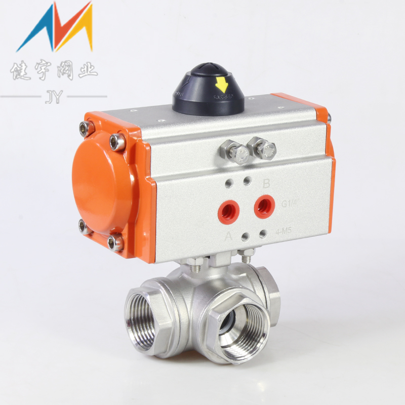 Q614 15F-16P stainless steel three-way pneumatic ball valve 304 pneumatic three-way ball valve screw three-way valve T L type