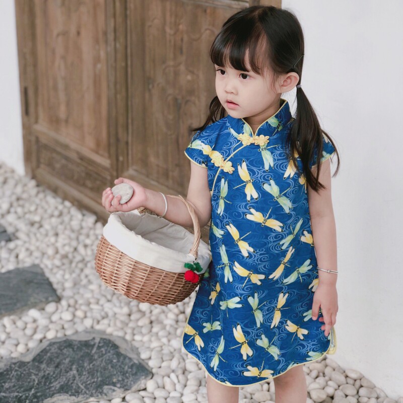 Girl Qipao Summer Short Sleeve Hanfu Children China China Wind Dress Baby Walking Show Gown Small Children Qipao