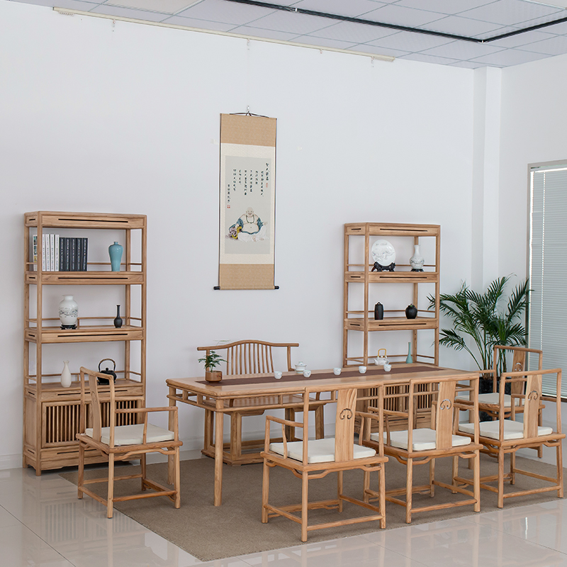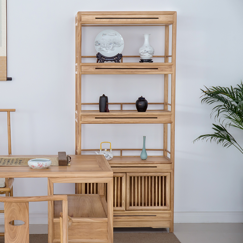 Zen new Chinese style black walnut bookshelf display rack old elm paint-free tea rack rack Bogu rack solid wood Chinese style