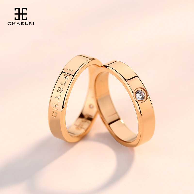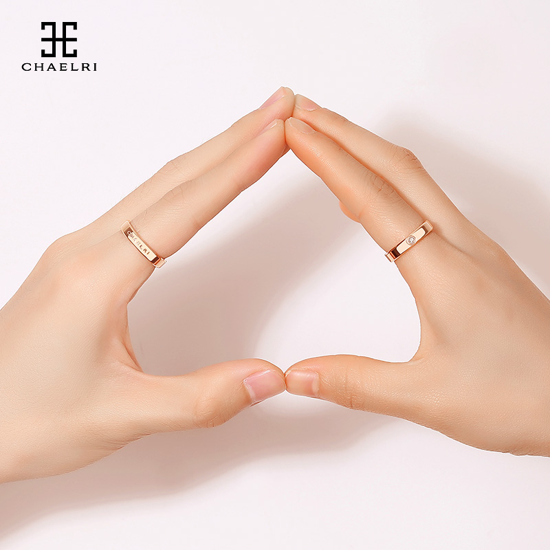 Lanmire couple ring men and women fashion personality tide index finger ins titanium steel plated 18K rose gold single diamond English