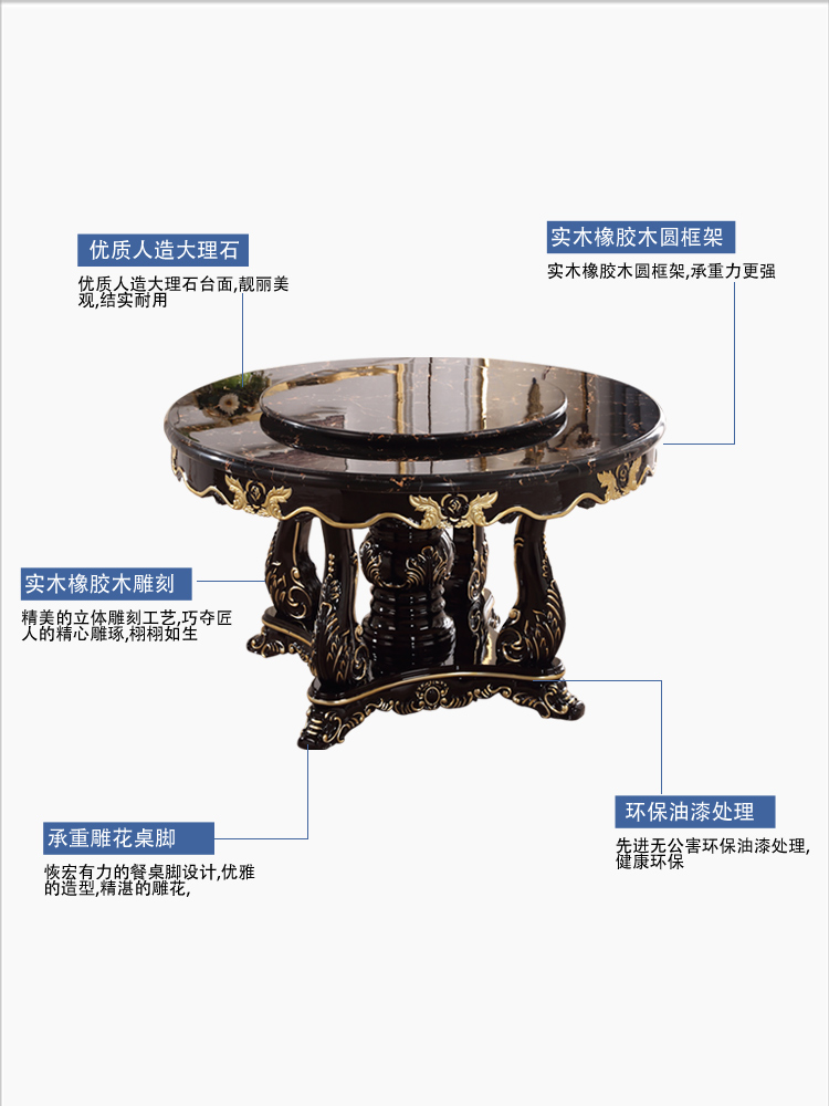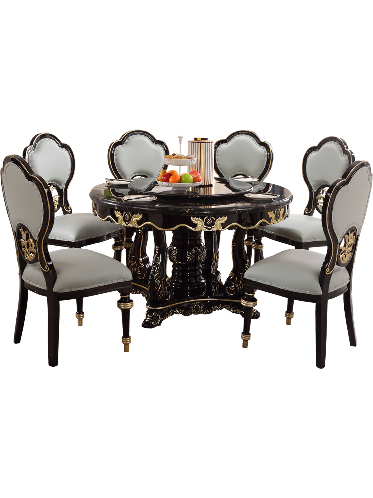European round table combined luxury black sandal luxury luxury luxury wooden carved marble dining table and chair European home dining table
