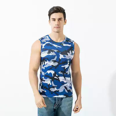 Outdoor sports fitness camouflage vest men's large size loose quick-drying ice silk T-shirt breathable elastic running vest