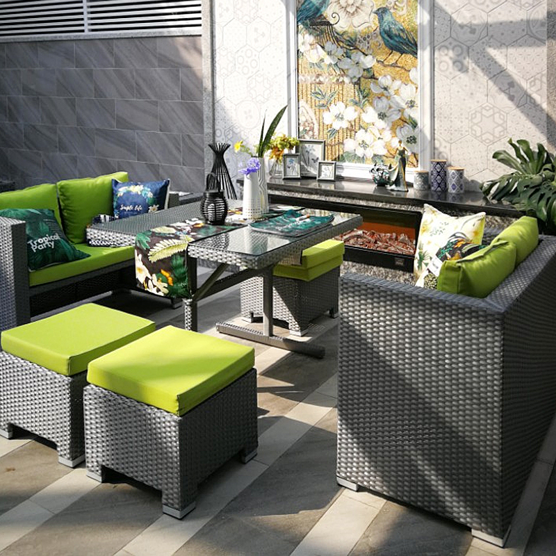 Far-lush Nordic Outdoor sofa Rattan Composition Small Family Type Balcony Creative Sofa Chair Casual Table And Chairs Waterproof Sunscreen