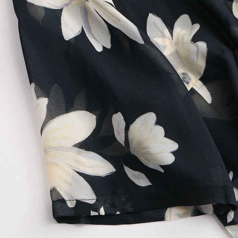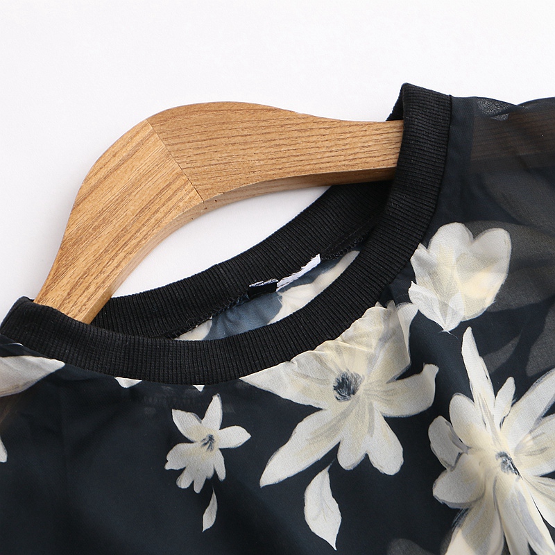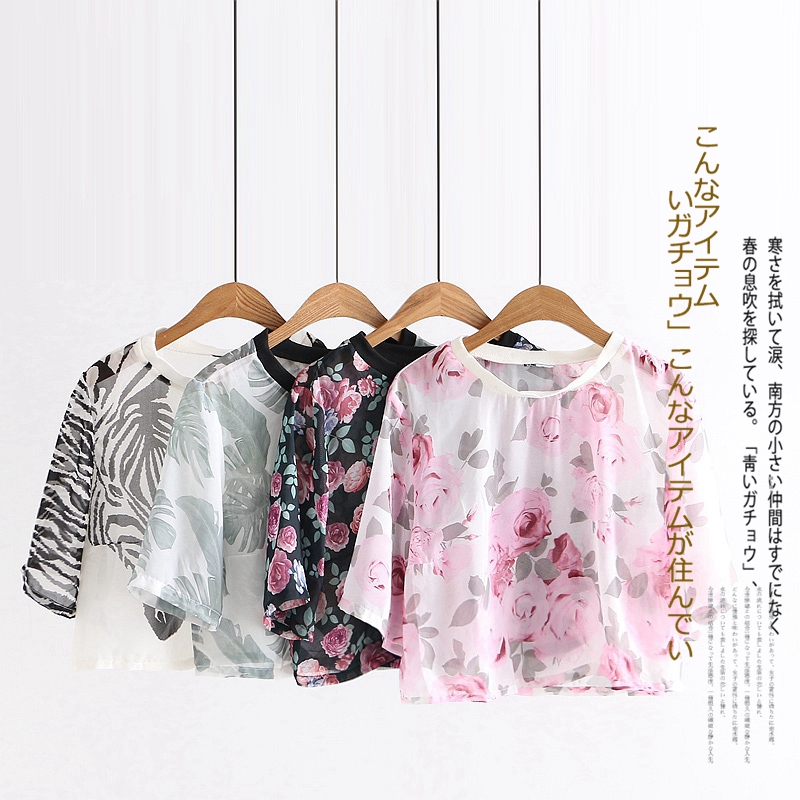 Pullover Chiffon Shirt Summer New Foreign Trade Women's Fashion Slim Perspective Printing Short Five-quarter Sleeve Top 5778