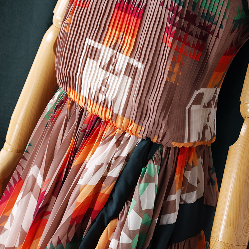 Indian nomadic print coloured block heavy industry folded female sleeveless middle - sleeve long dress 67169