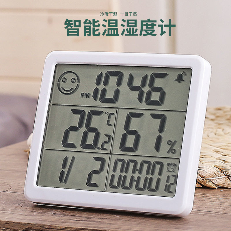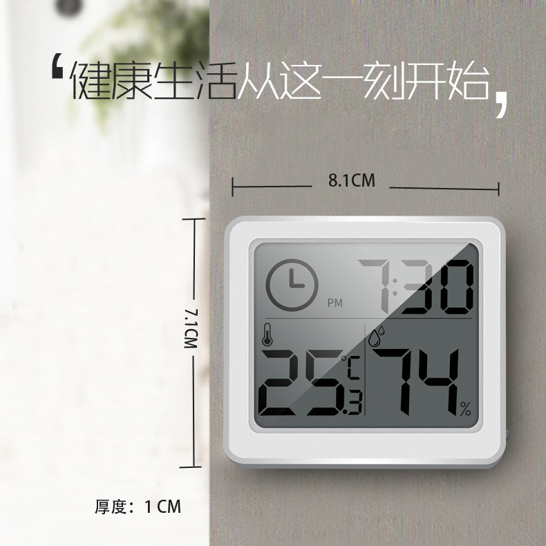 Ultra-thin thermometer indoor household electronic temperature and humidity meter thin home alarm clock baby room wall-mounted electronic clock