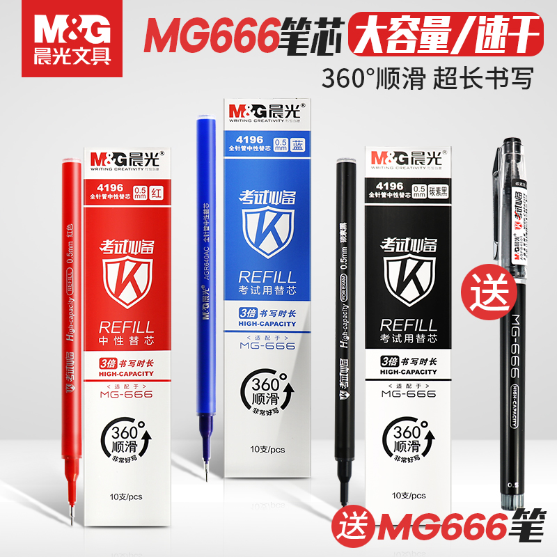 Chenguang mg666 refill 4196 students with 0 5 full needle tube black test special neutral refill agpb4501 thick tube large-capacity black pen refill carbon water-based pen refill smooth