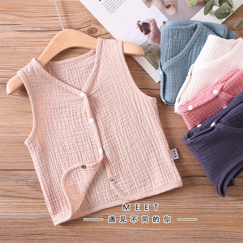 Baby waistcoat spring autumn thin baby boy pure cotton cotton cloth vest cotton numb shoulder cardiovert jacket outside wearing summer