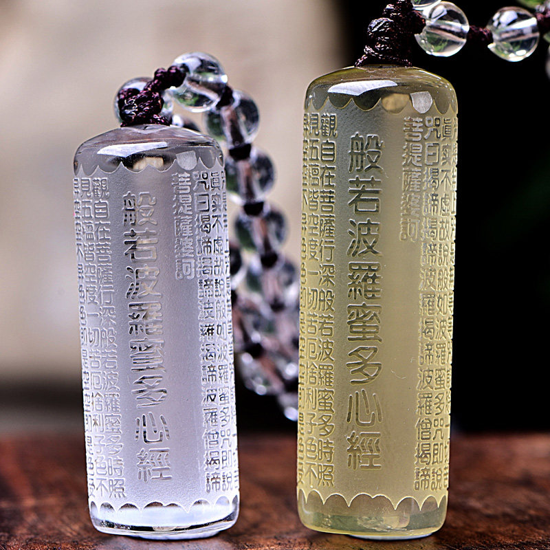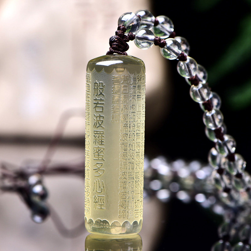 Gift Yellow and white crystal Shurangama Mantra Great Compassion Mantra Pendant Amulet Heart Sutra Pendant Six-character Truth Scripture Necklace