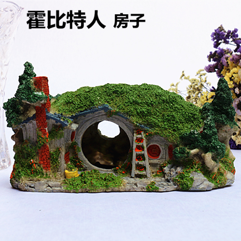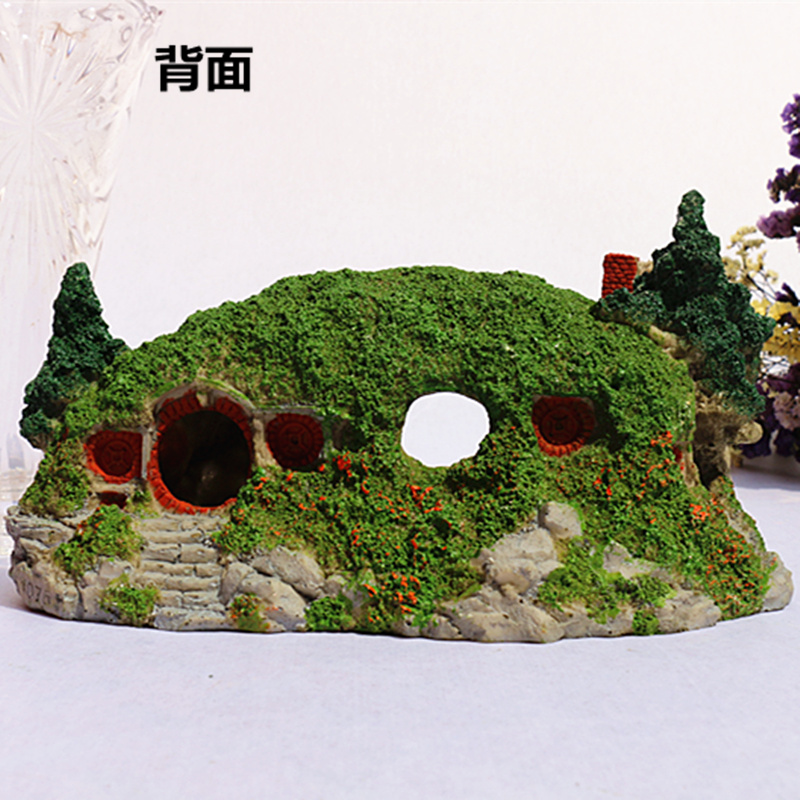 Fish Tank Fake Mountain House Decoration Building View Package Aquarium Pendulum resin Handicraft Imitation Fish shelter from the room