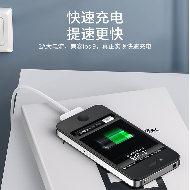 Applicable iPhone4s data line Apple 4 charging wire quadphone charger ipad2 tablet iPad3 quick filling one suit iPod old section wide mouth a1395 generation t