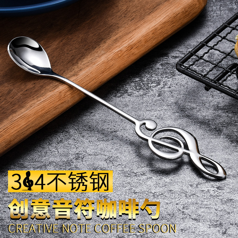 Note Coffee Spoon Eurostyle Small Luxurious 304 Stainless Steel Small Spoon Creativity Cute Milk Tea Stirring Spoon Small Tablespoon