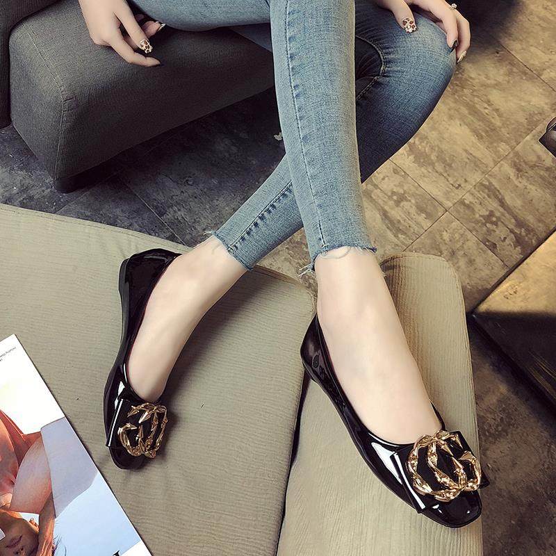 Hong Kong Boomer Women Shoes 2022 Spring Summer Net Red Flat Bean Shoes Casual Shallow work 100 lap single shoes