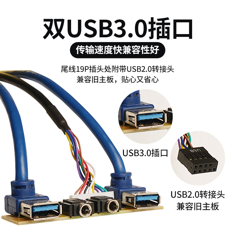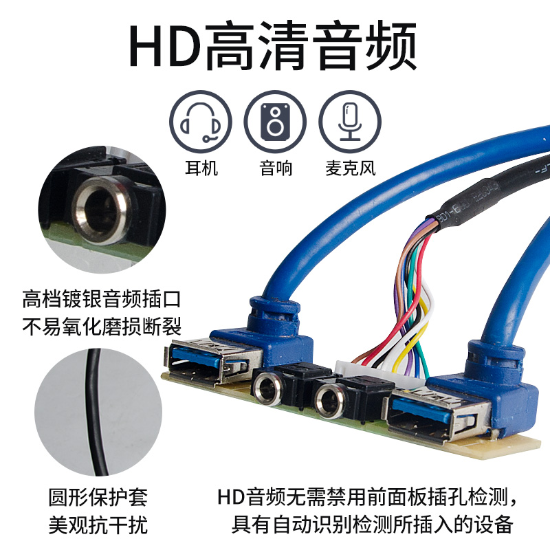Front Double USB3 0 Host shell Panel HD Audio Line HD High fidelity DIY Audio Group Round Line 3 0 data line