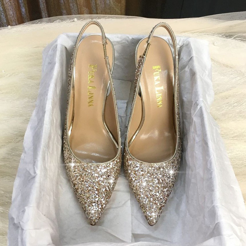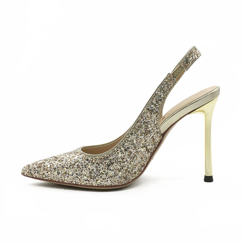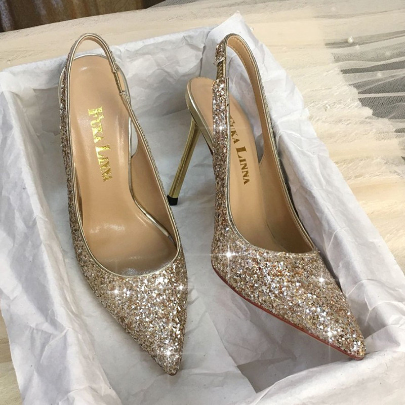 Broken size clearance does not return does not change pointed back trip belt crystal shoes gold sequined high heels rear empty thin heel sandals women