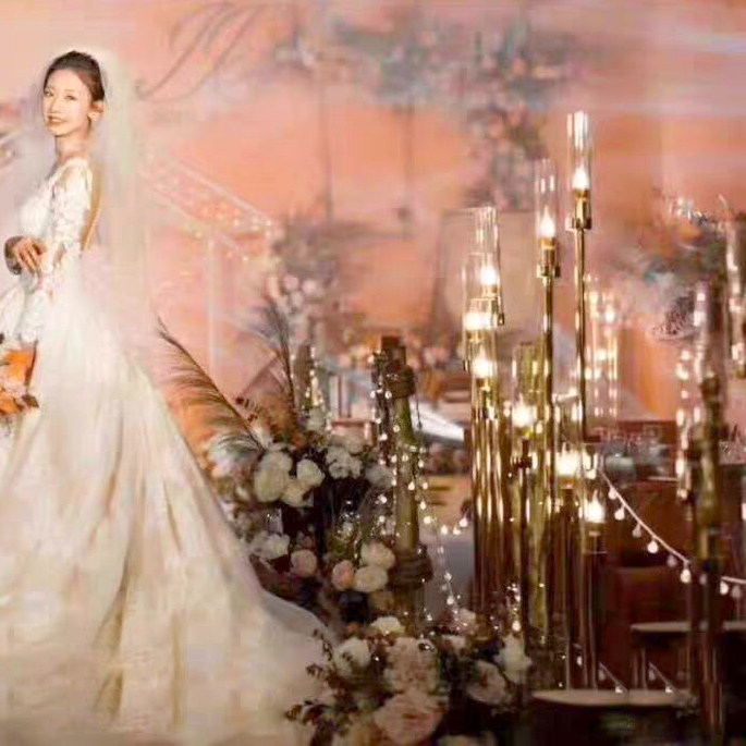 New Pint Plated Golden Road Lead Wedding Road Leading Light Steps High Rise Candleholder Road Lead T Table Arrangement Road Leading Decorative Lights