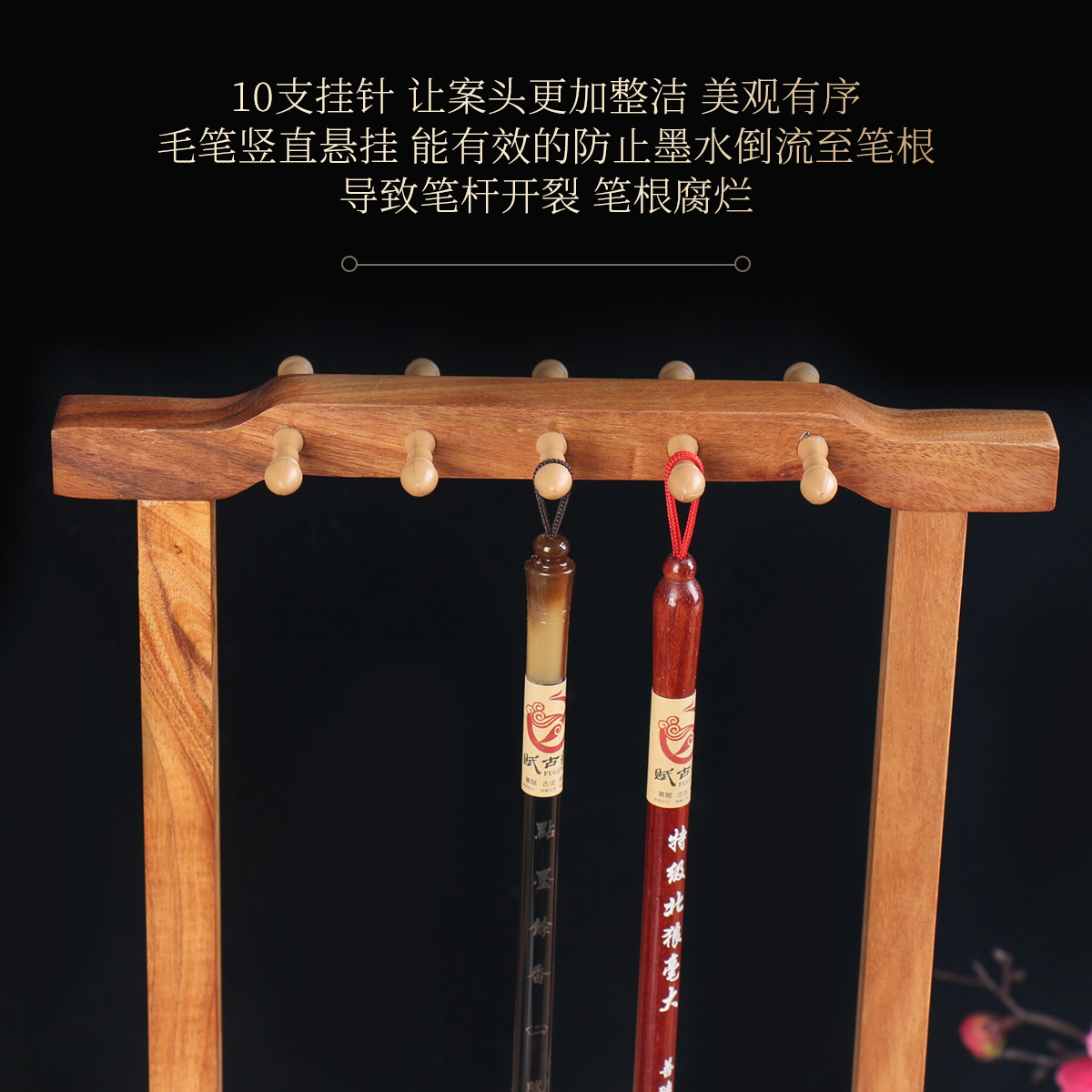 Phase Thinking Wood 10-Pin Brush Holder Pen Hang Modern New Chinese Minimalist Creative Solid Wood rack Put a brush on the shelf