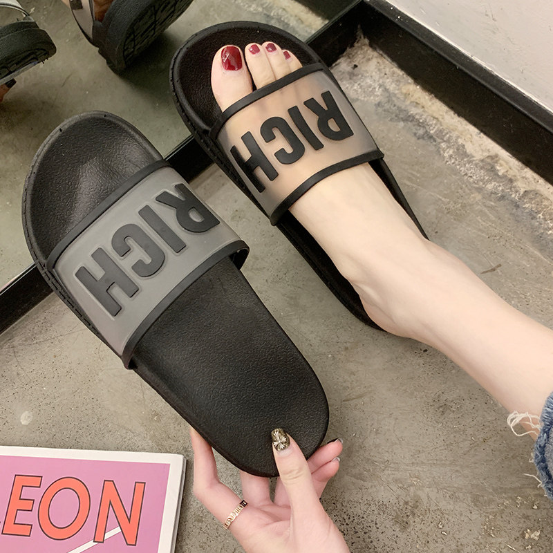 2020 female summer Korean version of the alphabet transparent slippers female summer ins students wear non-slip bath sandals and slippers indoors and outdoors