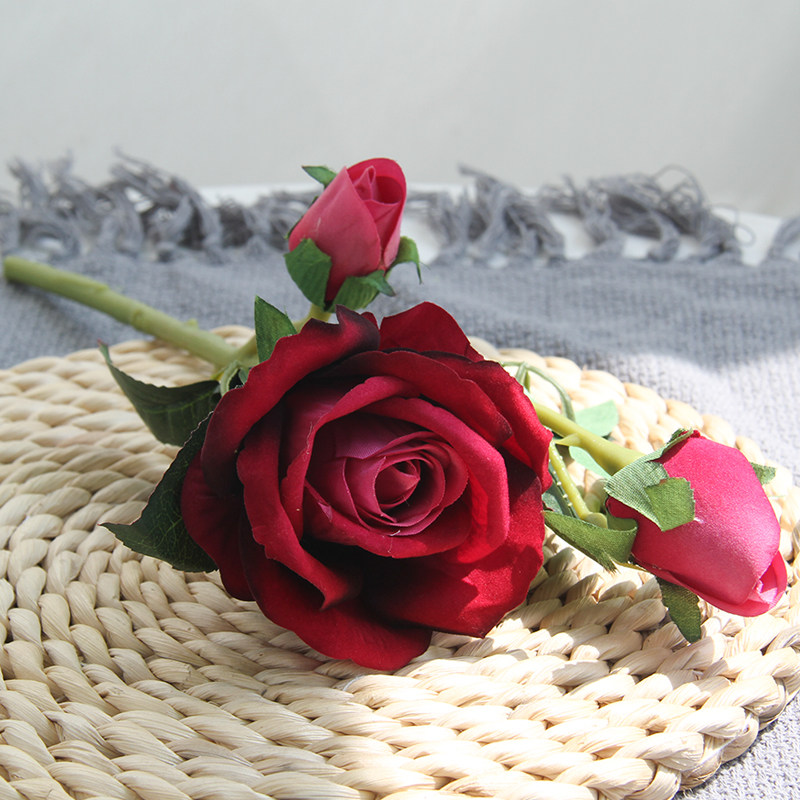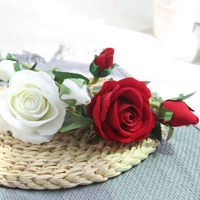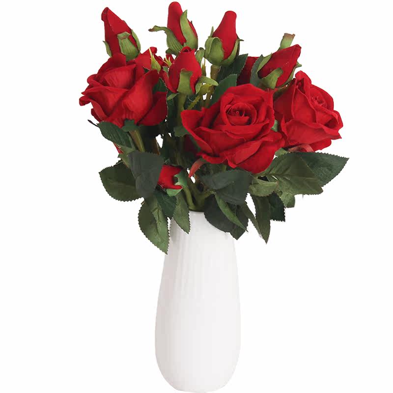3 Short flannel rose fake rose living room decoration flower red rose simulation bouquet five sets to send vase