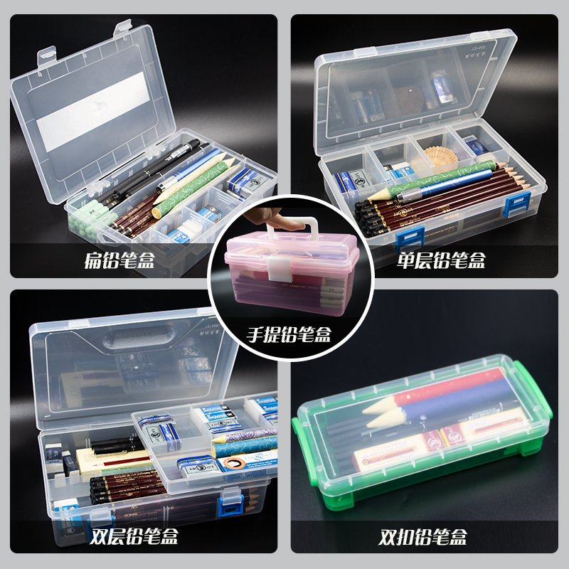 Old man's head sketch pencil box art students with large art pencil box painting plastic transparent painting large-capacity double-layer multi-functional supplies storage box multi-layer tool box painting box