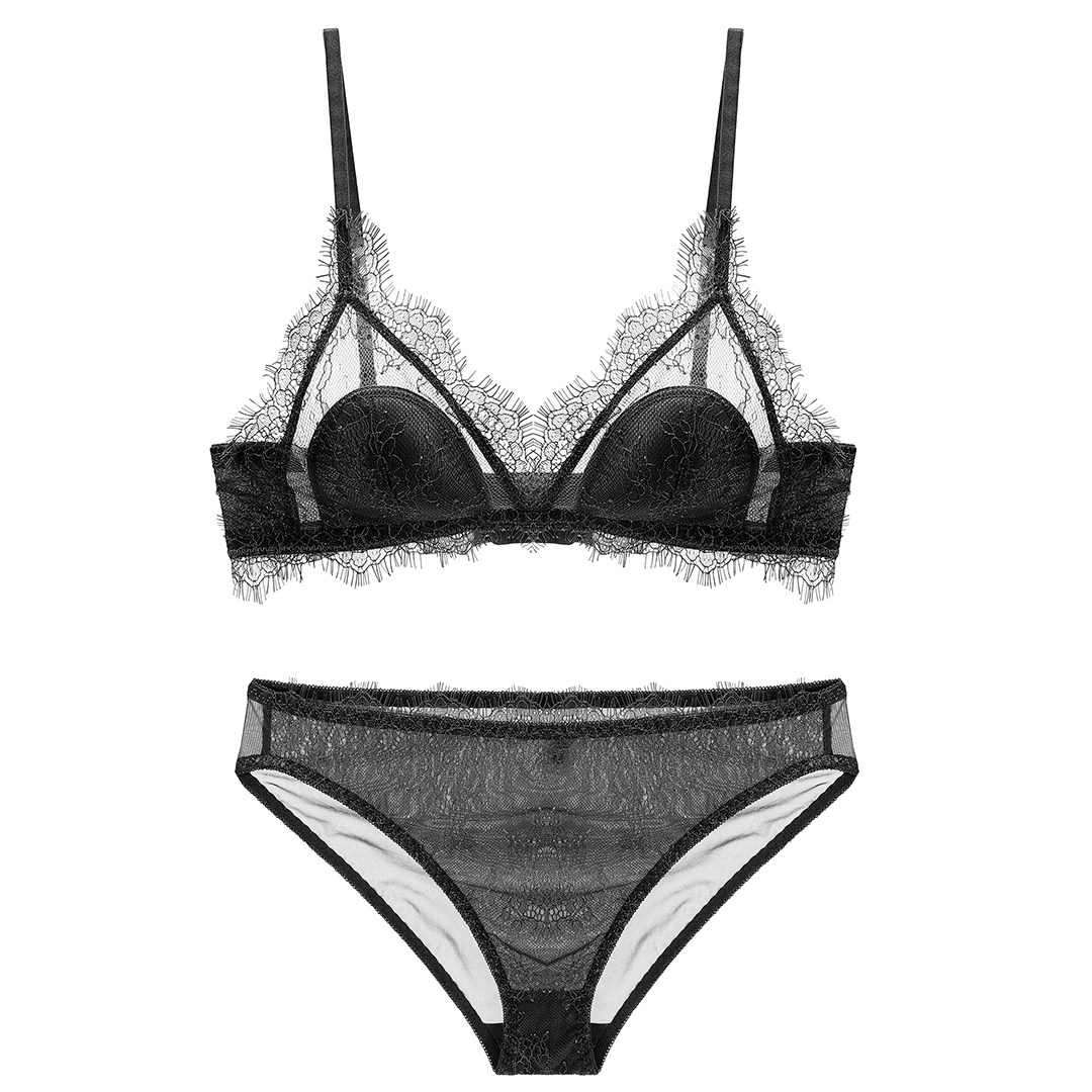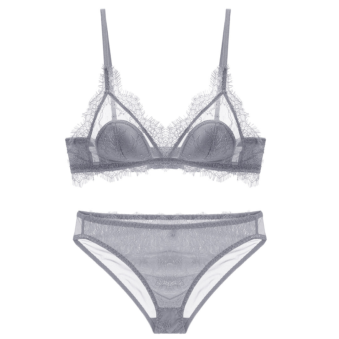 New French underwear sexy lashes lace no steel ring underwear set gathers ultra-thin bralette