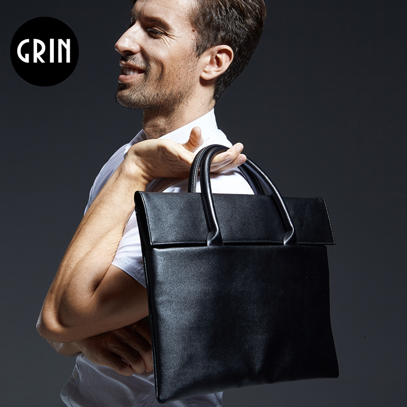 New business briefcase handbag handbag men's handbag leather paper bag Fashion Bull Leather Casual Boomer Bag