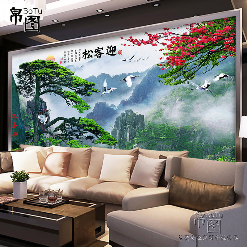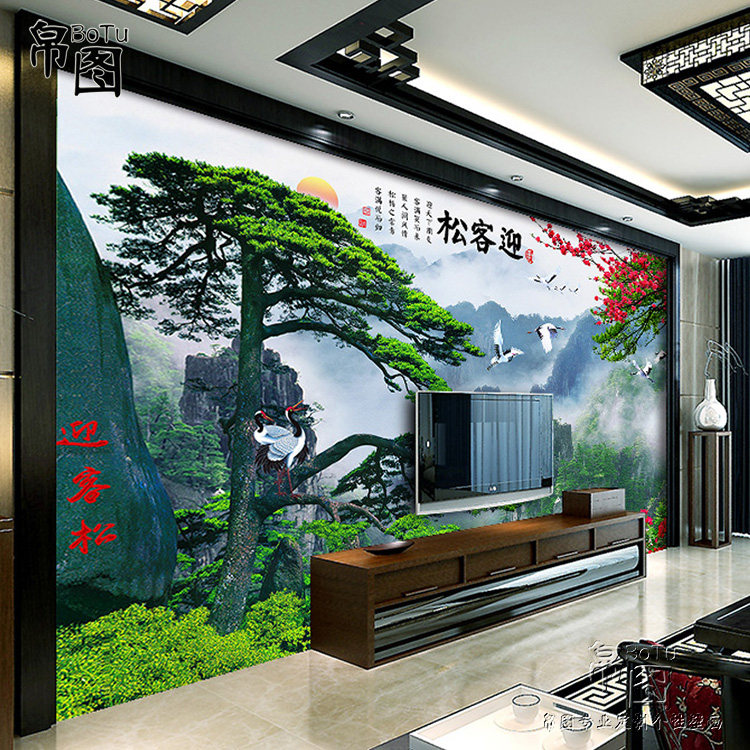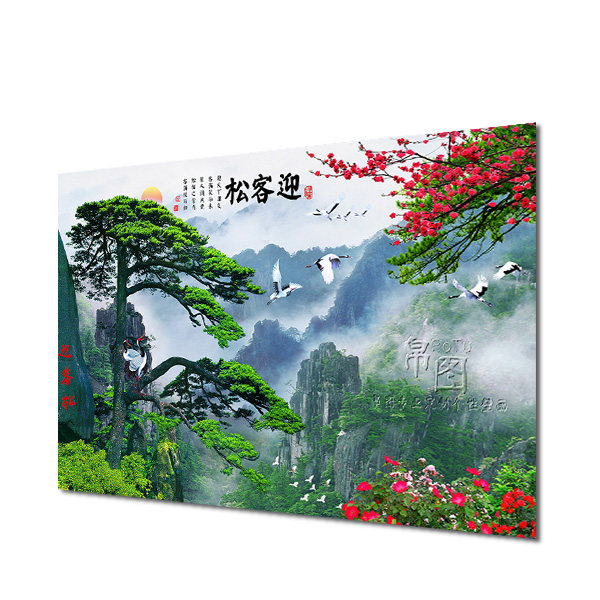 5D three-dimensional decorative mural welcoming pine landscape painting 8d Chinese-style living room sofa TV background bamboo and wood fiberboard painting