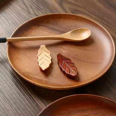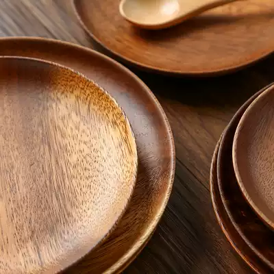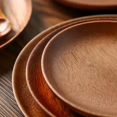 Japanese-style round household wooden tableware Walnut breakfast plate Hotel high-end tea water tray Simple solid wood tray