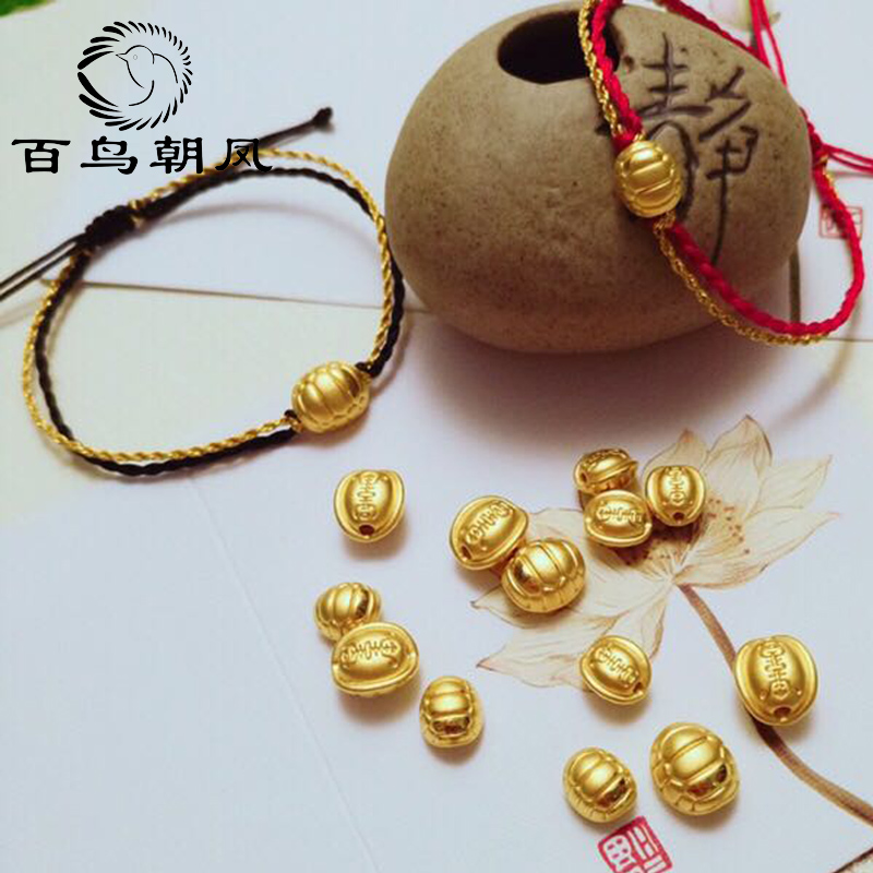 3D hard gold gold rich Gold Gold Gold Gold 999 small gold turtle shell transfer beads pure gold hand string men and women rope hand