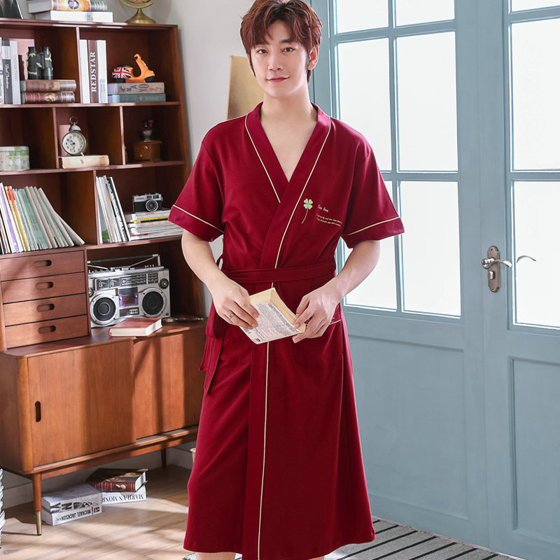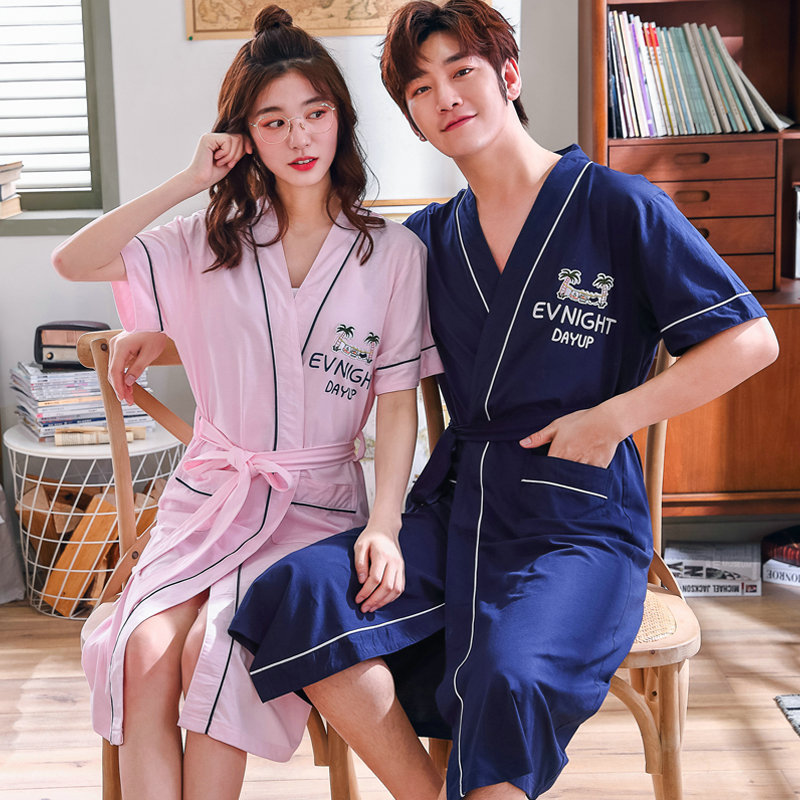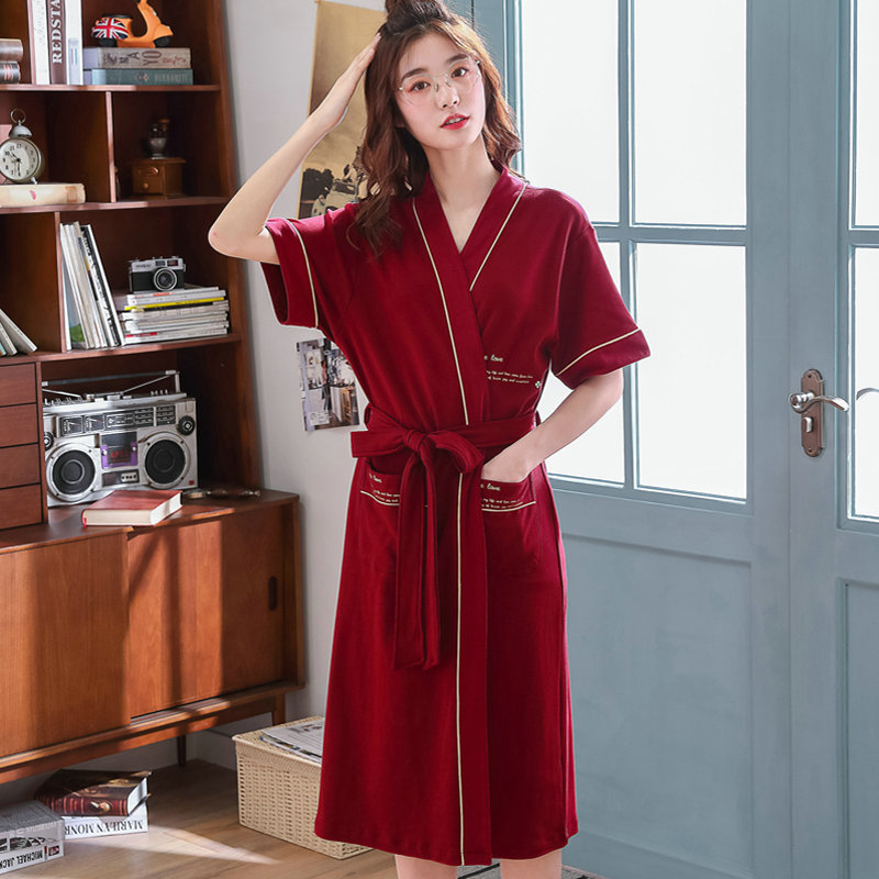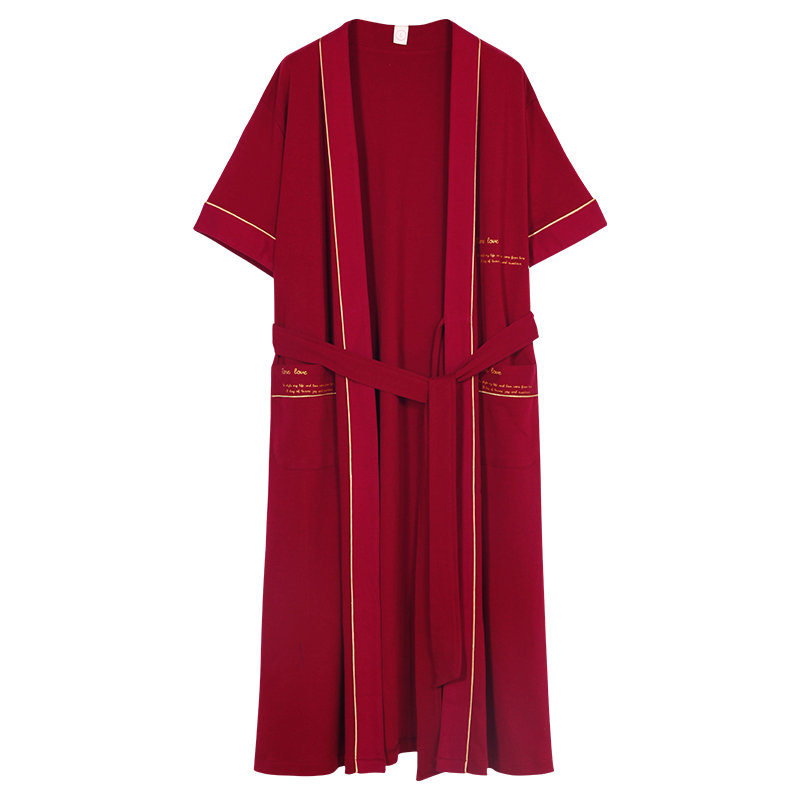 Summer slim lovers sleeping robes short sleeves Long version of pure cotton Ben life Red wedding pyjamas Men and women's home in summer